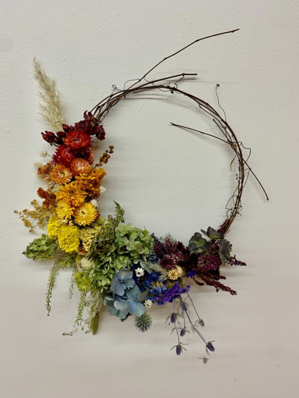 Join Laurie McKenzie of Dragonheart Flowers and Events to create dried flower circles to celebrate the depth of winter and the turning of the days towards the return of the light. Play with colorful, textural, and unique dried flowers and greens to make fantastic and fabulous circlets and wreaths. You will be amazed at what you can create in this supportive and fun workshop! All ages and skill levels are welcome and encouraged to attend.