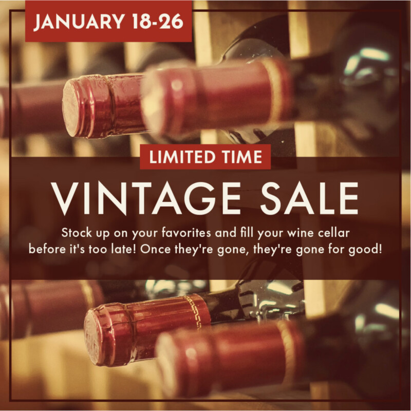 We're having a limited-time sale on select vintages from our library. Once they're gone, they're gone for good! Stock up on your favorites and fill your wine cellar before it's too late!