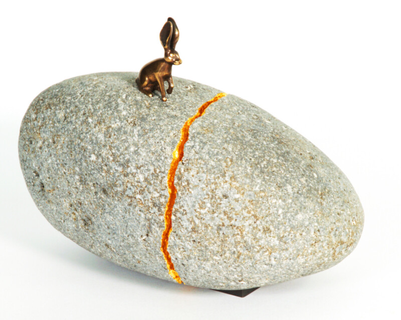 This wondrous exhibit pairs creations by Port Townsend artists Elissa Greisz and Maxwell Yakush: recycled aluminum and iridescent diffraction foil pieces, plus sculptures made from metal and stones from local sources. With titles such as "Ancient Secrets" and "Prairie House," Greisz and Yakush's artworks are made to inspire curiosity. Pictured: "Scrub Hare" by Maxwell Yakush.