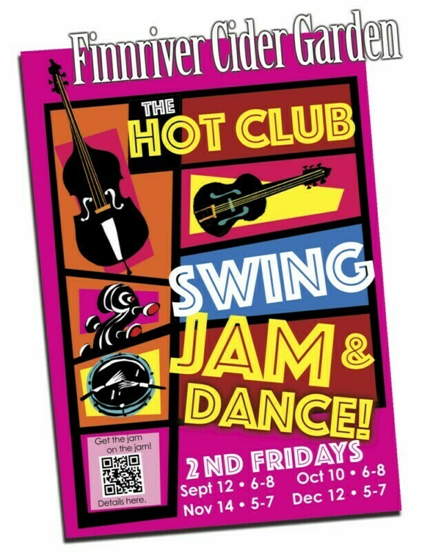 A Hot Club Swing Jam is a music session in which musicians play and improvise over the traditional jazz Manouche (Django Reinhardt) repertoire, as well as any other swing jazz standards they like. It's a delightful opportunity to try out your chops and experience music in community, and is open to musicians who know the style.