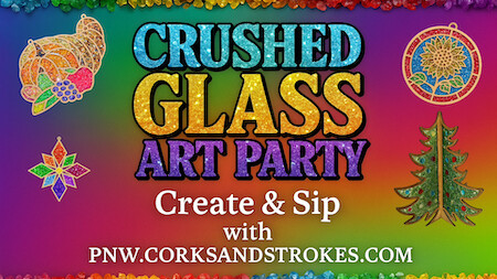In this festive Create & Sip experience, you’ll design your own 12” framed suncatcherusing vibrant, hand-dyed crushed glass. Choose from a variety of beautiful wood cutout designs and fill them in with colors and textures that are uniquely yours. No experience needed — just bring your creative spirit and get ready to play!