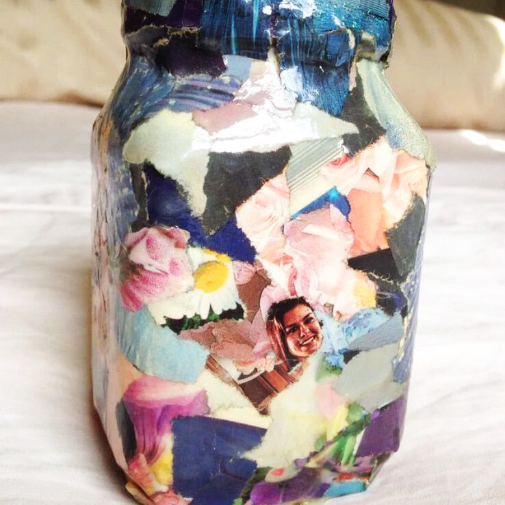 Come decoupage a jar in this lighthearted class for people of all artistic abilities. Your unique jar — a pen holder, vase, or container for treasures — makes a wonderful gift for a loved one or a nice memento for yourself! In this two-hour class with Leila Block as your guide, we'll begin with a short, guided meditation on giving and receiving this holiday season. All supplies are provided, but if you have a particular jar you would like to decoupage, you are welcome to bring it to our class. All supplies are provided, but if you have a particular jar you would like to decoupage, you are welcome to bring it to our class.