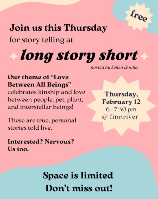 Please join us at Finnriver to share in a night of storytelling!