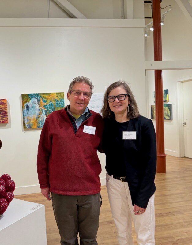 Come on a walkabout around the gallery with Darwin Nordin, the artist and naturalist whose work is in the "Confluence" exhibit at Northwind's gallery. Forest and marine scenes come under Darwin's spell via his layered mixed media techniques. This casual discussion will give you insights into his process and inspirations. Pictured: Darwin Nordin with artist Kristin L. Tollefson, whose work appears with Darwin's in the "Confluence" exhibit.