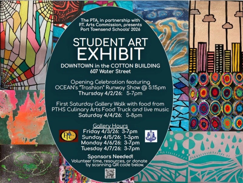 Our goal is to not only expand the reach of the students’ art exhibit, but to instill a sense of pride and belonging for the students in the wider community of artists in Port Townsend. We hope they feel more seen, heard, and appreciated as young creators. We consider this one of the most hopeful events of the year. Art lifts us all up, and expresses more than we can say. We hope the community will get an insider view of what inspiring things are happening in our public schools. We are planning multiple events to give the community more opportunities to engage with student work, including: