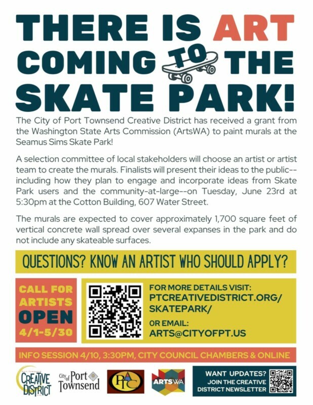 The City of Port Townsend Creative District has received a grant from the Washington State Arts Commission (ArtsWA) to paint murals at the Seamus Sims Skatepark!